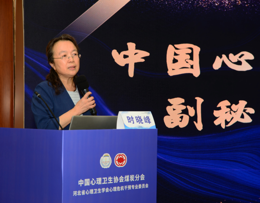 中国心理卫生协会副秘书长时晓峰致辞,肯定会议的重要意义,表达对心理卫生事业发展的期望,并提及协会对相关工作的长期支持。