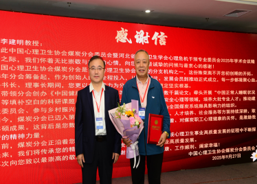 于振剑院长为中国心理卫生协会煤炭分会原主委李建明教授颁发感谢信,以感谢其在心理卫生领域的辛勤付出与突出贡献,由孙妍同志宣读感谢信。