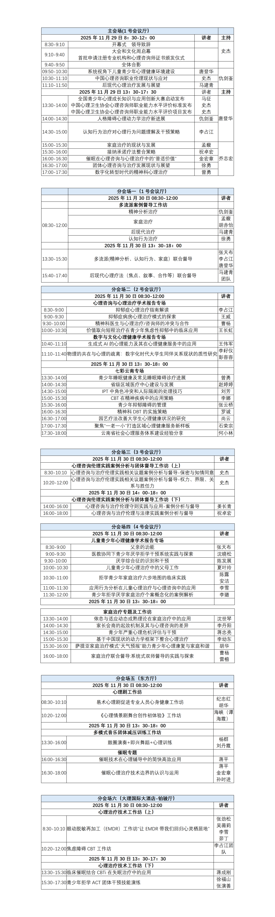 为进一步推动我国心理咨询与心理治疗行业的规范化与职业化发展,提升从业人员的专业能力与服务水准,2025年11月28日至12月5日,中国心理卫生协会联合多家分支机构,共同举办“心理咨询与心理治疗行业发展大会暨大理首届心理健康文化周”。本次大会聚焦“规范”与“融合”,旨在为全国心理工作者搭建交流、学习与督导的高质量平台。
