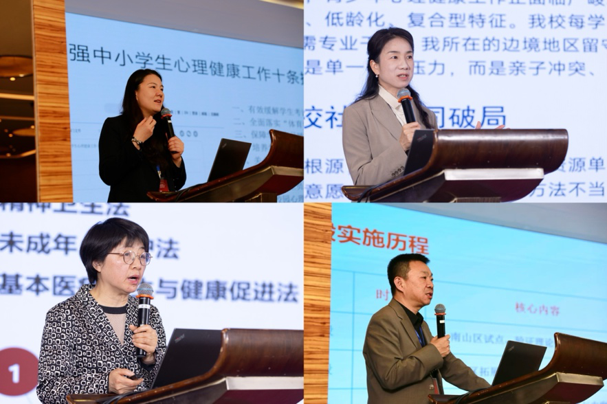 下午,会议进入专题研讨会环节,由北京师范大学教育学部特殊教育学院贺荟中和中央财经大学心理咨询中心副主任丰怡担任主持。与会专家围绕家校社医协同的实践探索、制度建设、难点应对等热点议题作了多场高水平主旨报告,充分展现了家校社医协同领域的前沿思考与实践成果。乔志宏主委以《中学生拒学风险群体特征、症状机制及家校社医协同育人启示》为题作主旨报告,系统分析了拒学风险群体的表现特征及其形成机制,并从协同育人角度提出了有针对性的应对思路。何凡副主委作了题为《以情绪问题为线索的青少年心理问题筛查与早期干预:融合神经发育多样性评估的探索实践》的报告,围绕青少年心理问题早期识别与精准干预进行了深入分享。何挺常委以《司法视角下的未成年人成长历程》为题,从司法角度,结合真实案例分享了影响未成年人犯罪或被害的家校社网因素,并从未成年人司法保护与成长支持的角度展开了专题阐述。随后,李雪副主委围绕《家校医社协同背景下的学校心理保障体系建设》介绍了基于学校的儿童青少年心理保健体系建设思路和经验;黄长群副主委作《儿童青少年心理健康促进政策研究》报告,从政策层面系统梳理了儿童青少年心理健康促进工作的重点方向;黄花春委员作为两届人大代表,以《从“单点突围”到“系统赋能”——以协同之力破解青少年心理健康密码》为题,分享了基础教育一线的探索与思考;徐福山委员则通过《深圳市安心助学系统式工作实践》,展示了地方在推进家校社医协同工作中的创新路径与实践成效。各场报告内容紧扣现实需求,兼具理论深度与实践价值,赢得了与会专家的广泛关注与积极反响。