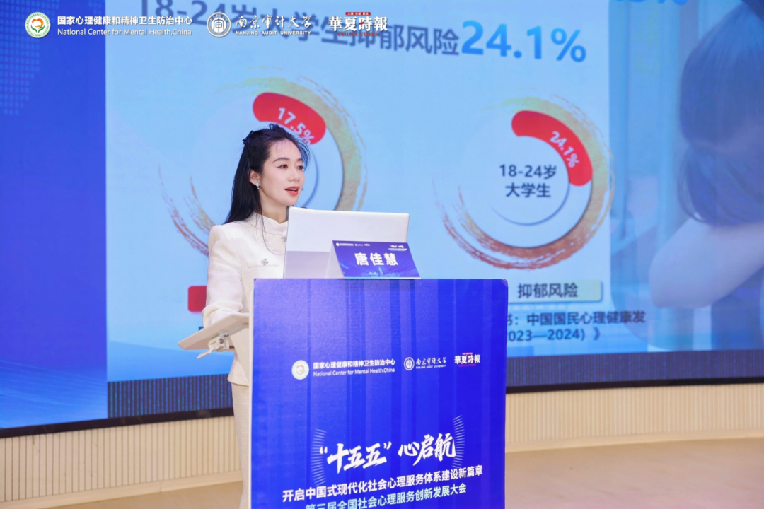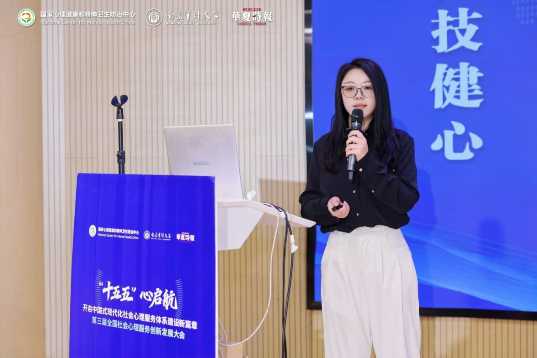 井冈山大学映山红心理工作室负责人唐佳慧介绍了“3+N”大学生朋辈赋能中小学生心理健康成长项目,该项目为中国心理卫生协会后现代心理疗法专业委员会推荐的优秀项目,累计培育朋辈辅导员3000余人、走进78所中小学校、开展活动5000余场,既缓解了中小学心理教育资源不足,又让大学生在助人实践中找回价值认同。