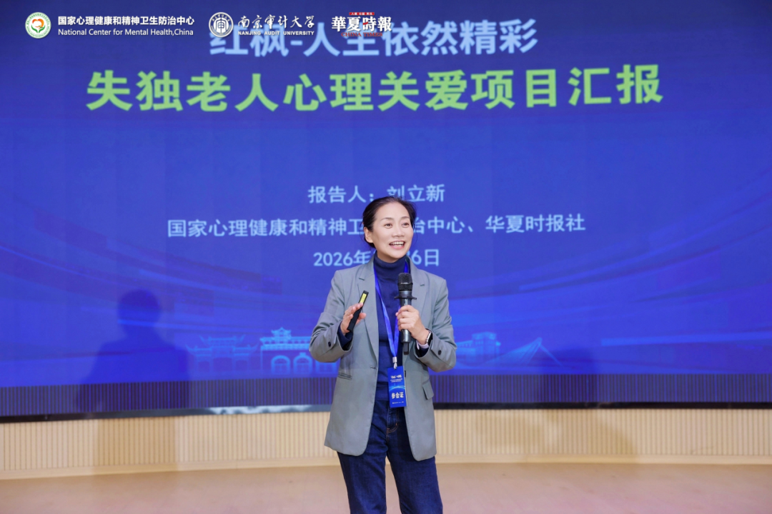 北京枫彩心理咨询服务中心执行主任刘立新介绍了“人生依然精彩”失独老人心理关爱项目,该项目由中国心理卫生协会妇女健康与发展专业委员会推荐,经过13年探索形成“他助—自助—互助”工作模型,多位失独老人组建志愿服务队实现从受助者到助人者的转变,项目模式编入《失独工作手册》供全国推广。